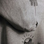 Grundlage für dieses Motiv ist ein analoger Vordruck, dessen Vinylvorlage von Hand bearbeitet wurde. Der Siebdruck zeichnet sich durch eine sehr gute Haltbarkeit und hochwertige Haptik aus. Auf der Kapuze befindet sich das Label-Logo.